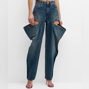 AREA Crystal Embellished Front Slit Jean in color Vintage Indigo, brand new.