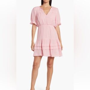 Maisie Eyelet Trim Tiered Ruffle Cotton Dress in Pink