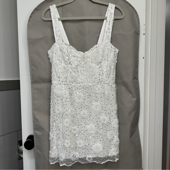 Dress is just as described and so beautiful, seller was very reasonable with price/offer. Super speedy shipping and fit like a glove! I’m so excited to wear this on my big day as a reception dress!