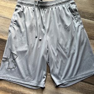 Under Armour Mens XL Gray Loose Fit Athletic Basketball Shorts Logo Graphic