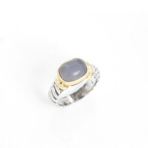 David Yurman Classic Chalcedony Stone Cable Ring. Silver and 14K Gold.