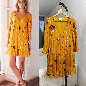 Reformation Yellow Floral Deep V Wrap Dress