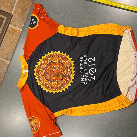 Mel52Hold, The 2XL, Crave Cycling, red-yellow-orange-black, “Aztec End of the World”, short-sleeve bicycle jersey is striking, fits well and is a good price. I’ve had my eye on it, for several months — it stayed in my mind. I look forward to wearing it soon, when the weather has warmed up, here in MD. Thank you. MonaDatta1