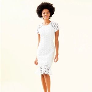 NWT Lilly Pulitzer Aliza Midi Dress Polka Dot Lace, Resort White, Size 6