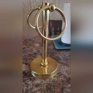 Polished Brass Towel Holder Double Ring Holder Stand Bathroom Accessory c 1970s