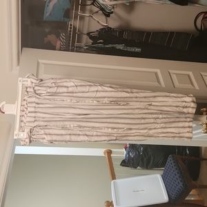 Grey and white vertical striped cotton pants, stretchy waistband, size medium