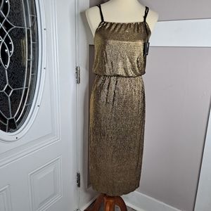 NWT Bobeau Gold Blouson Midi Dress sz XS