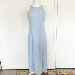 Vintage Gap 90’s Light Blue Linen Long Dress Keyhole Back High Neck 4