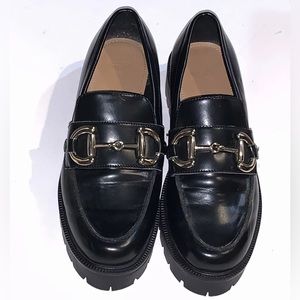 H&M Black Patent Black Lug Sole Loafers Womens US 8 EU 39