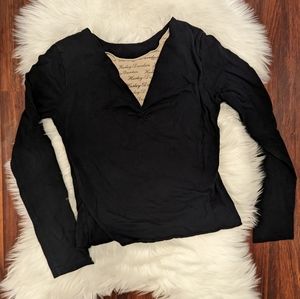 PINK Victoria's Secret Cinched Long Sleeve Waffle Knit Henley Black