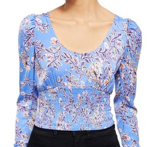 free people santiago print blouse in blue