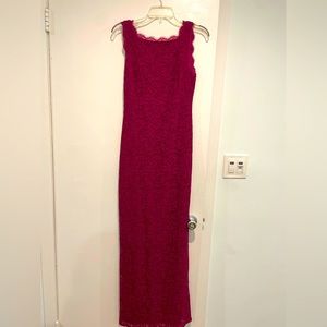 Magenta lace evening gown