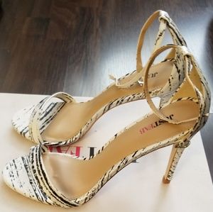 JustFab Rosey Printed Heels Shoes | Black & White