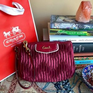 Coach Bordeaux Madison pleated satin wristlet