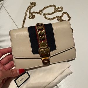 GUCCI Calfskin Super Mini Sylvie Chain Shoulder Bag White