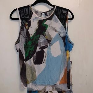 Vintage Nipon Boutique Blue Multicolor Striped High Low Dress