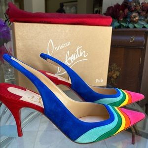 $895 Christian Louboutin multi-color suede slingbacks Degradama 80 VV/Suede 37.5