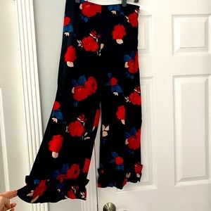 Club Monaco Black Silk Pants with Roses
