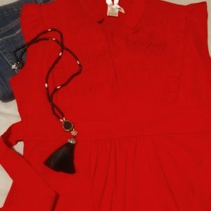 Cute Tie-Back/Side Red Butterfly sleeve top
