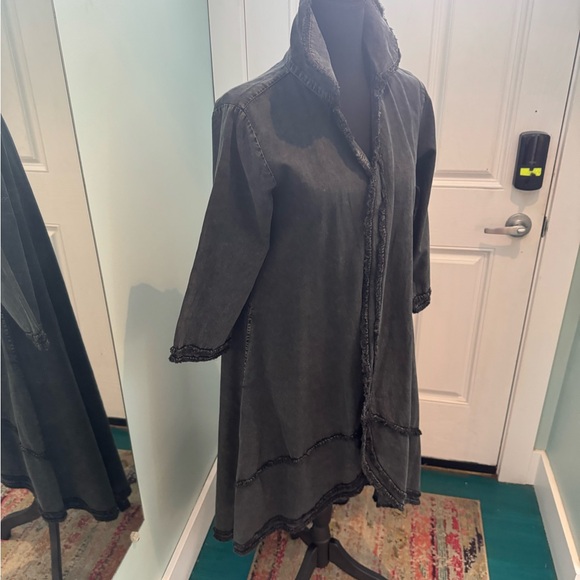 It's such a thrill to receive a purchase and love it even more than expected. That's certainly the case with this duster. The fabric is soft and beautifully aged, the style (much longer in back, ruffled all around the perimeter) is flattering, and the fit is perfect. Many thanks, @mmm4444; I look forward to shopping with you again.