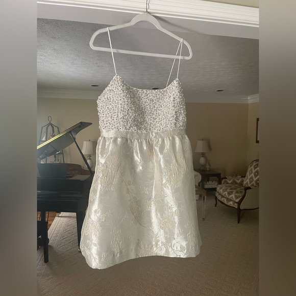 Box was damaged and open on arrival but the dress was only missing some beads.