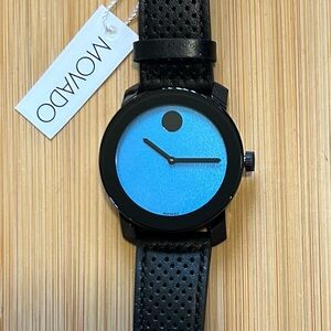Movado Face Watch With 41mm Silver White Face With & Brown Leather Band
