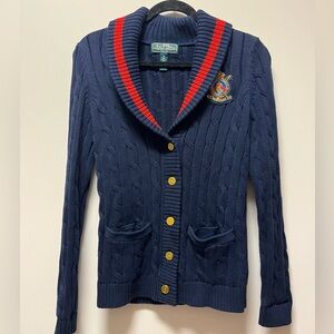 Ralph Lauren Active Navy Blue Cable Knit Shaw Collar Cardigan