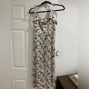 NWOT Zara Black & White Floral Silky Slip Dress With Ruffle and Buttons - Small