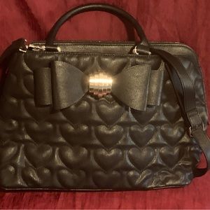 Betsy Johnson Purse black with rose petal material inside of purse
