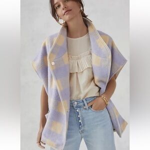 Anthropologie Lavender and Cream Checkered Oversized Vest
