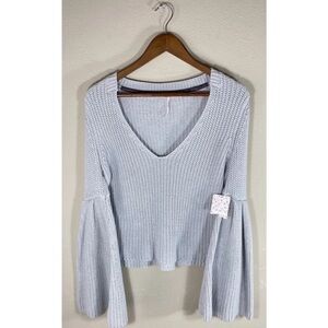 Free People Cropped Grey Bell Sleeved Sweater