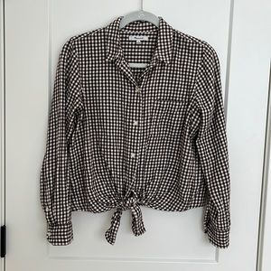 Universal Thread size M long-sleeved black & white plaid flannel button-down