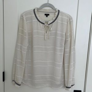 Talbots Size M ivory tie neck blouse with navy striped ribbon detail