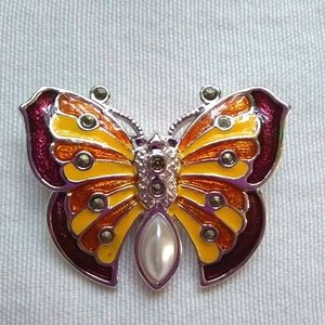 Danecraft Vintage Enamel Butterfly Brooch Pin Orange Pearl Multicolor