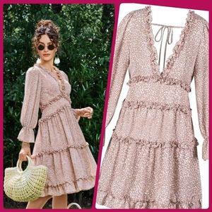 Ruffled Mini Dress with Plunging Neckline and Opened Back
