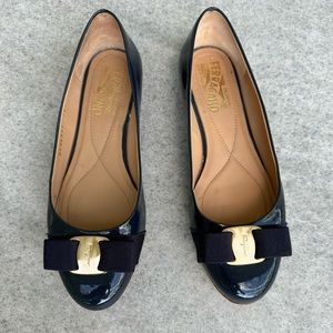 Salvatore Ferragamo Varina Navy Patent Leather Flats 7B. Very good cond…