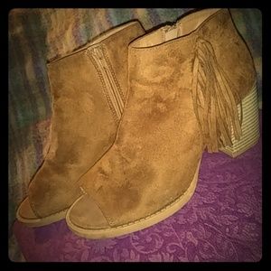 Adorable brown fringe booties by SODA