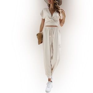 Frenchy Twist Front Crop Blouse & Tie Front Pants