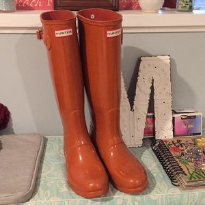 Orange glossy hunter boots