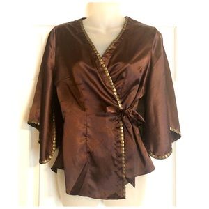Riley & James Sheer Mint & Brown Popover Top