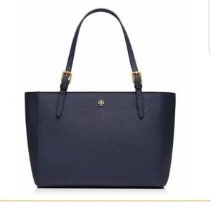 Tory Burch Small Buckle Saffiano Tote Navy
