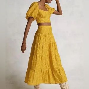 Anthropologie 2 piece midi skirt set with bustier statement sleeve top