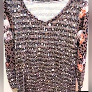 Catherine's Mocha Brown Sparkly Embellished Square Print Tunic