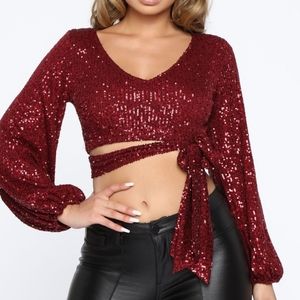 Fashion Nova Sequined Crop Top with Bow