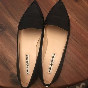 Karl lagerfeld black leather pointy flats