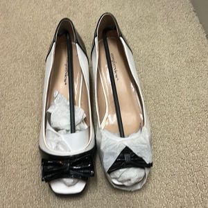Comfort View White & Black Patent Leather Peep Toe Pumps w/ Bow 8 w