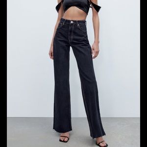 Zara Wide Leg Jeans High-Rise Full Length Sz 6/38 Ocean Blue NWT