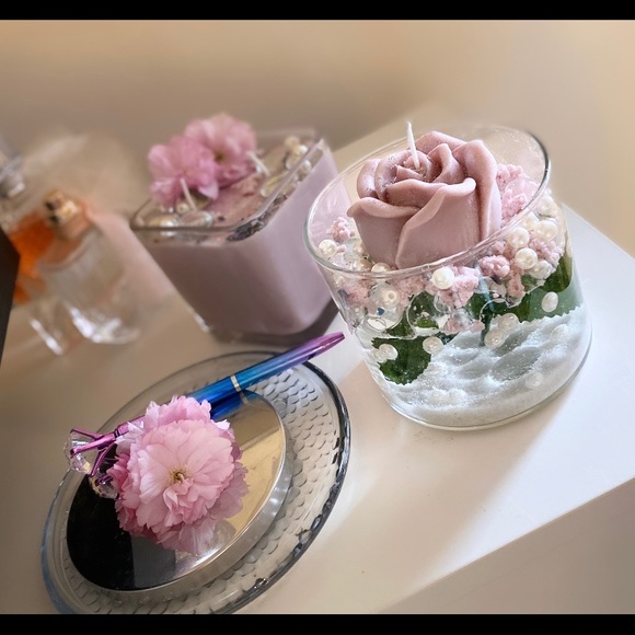 The package came in tact and safe! It arrived extremely quick. The candles were well wrapped to avoid any damages. It smells amazing. There is even a personal note on how to use the candle, scent and ingredients used. I loved the quote on mine and the glitter pearls flowers etc add a beautiful touch I don’t even want to burn them it’s so pleasing to just look at! Thank you 💜
