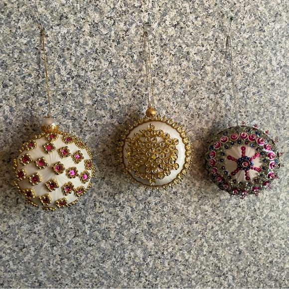 The most stunning ornaments- even prettier in person! Seller shipped them out right away and they arrived in perfect condition. So happy with my purchase.