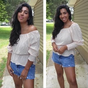 FOREVER 21 BLUE ORANGE CREAM STRIPED TOP MEDIUM